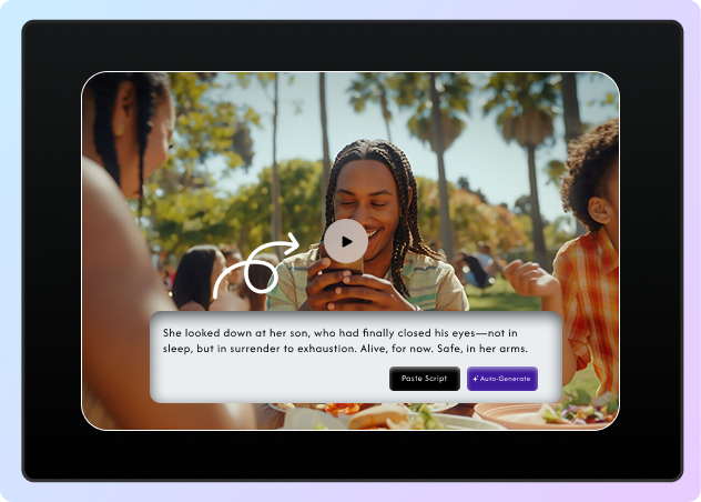 Add accurate subtitles and on-screen text automatically. Boost accessibility, retention, and SEO with captioned content that keeps viewers watching—even with the sound off.