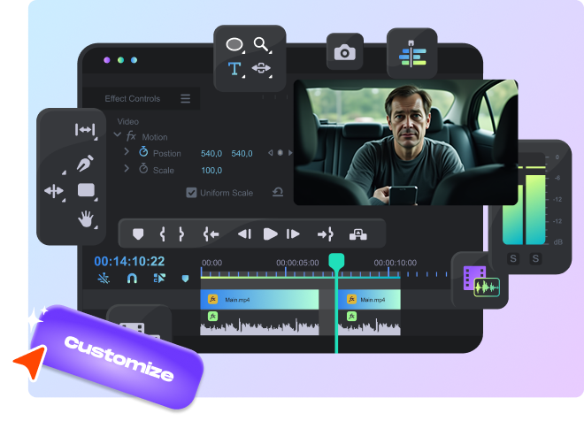 Add cinematic transitions, filters, and motion graphics with a single click. Make your videos look polished, professional, and ready for high-performing content feeds.