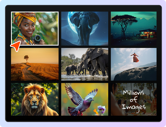 Access millions of royalty-free images to enhance your videos, sourced from top-tier libraries. Perfect for storytelling, branding, and adding visual depth without needing to shoot anything yourself.
