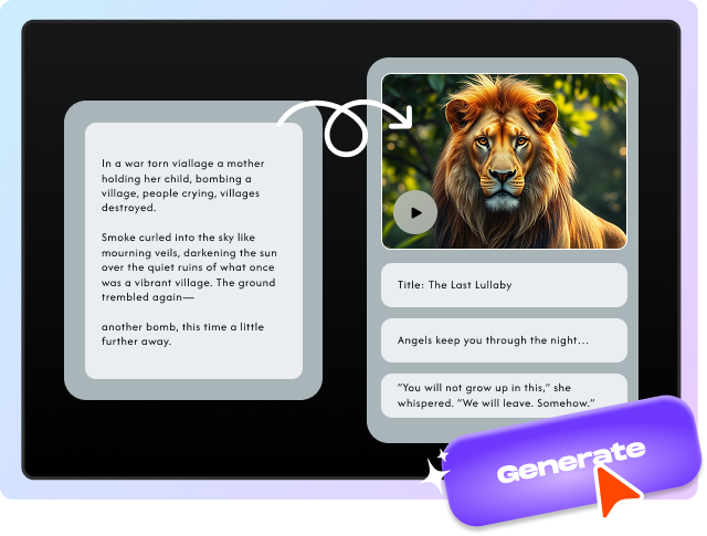 Convert your existing blog posts or articles into scroll-stopping videos—complete with AI narration and relevant visuals. Repurpose written content into highly shareable video assets to boost traffic, engagement, and SEO.